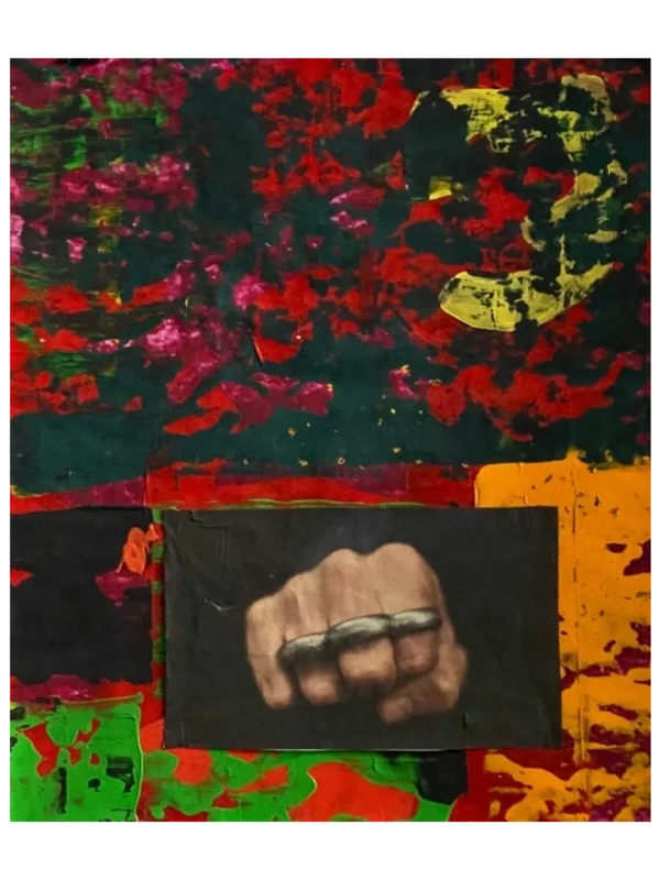 In Doa-se um Coração Maltratado, Perin pushes his research beyond traditional painting by incorporating materials such as cardboard, gauze, and adhesive tape, giving a sense of vulnerability and suffering. The artwork becomes a metaphor for a wounded heart, exploring human fragility through a layered and powerful aesthetic.